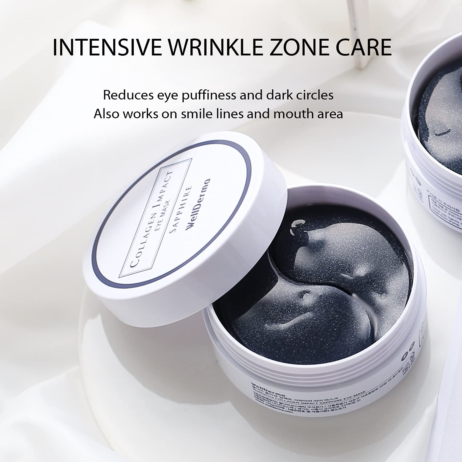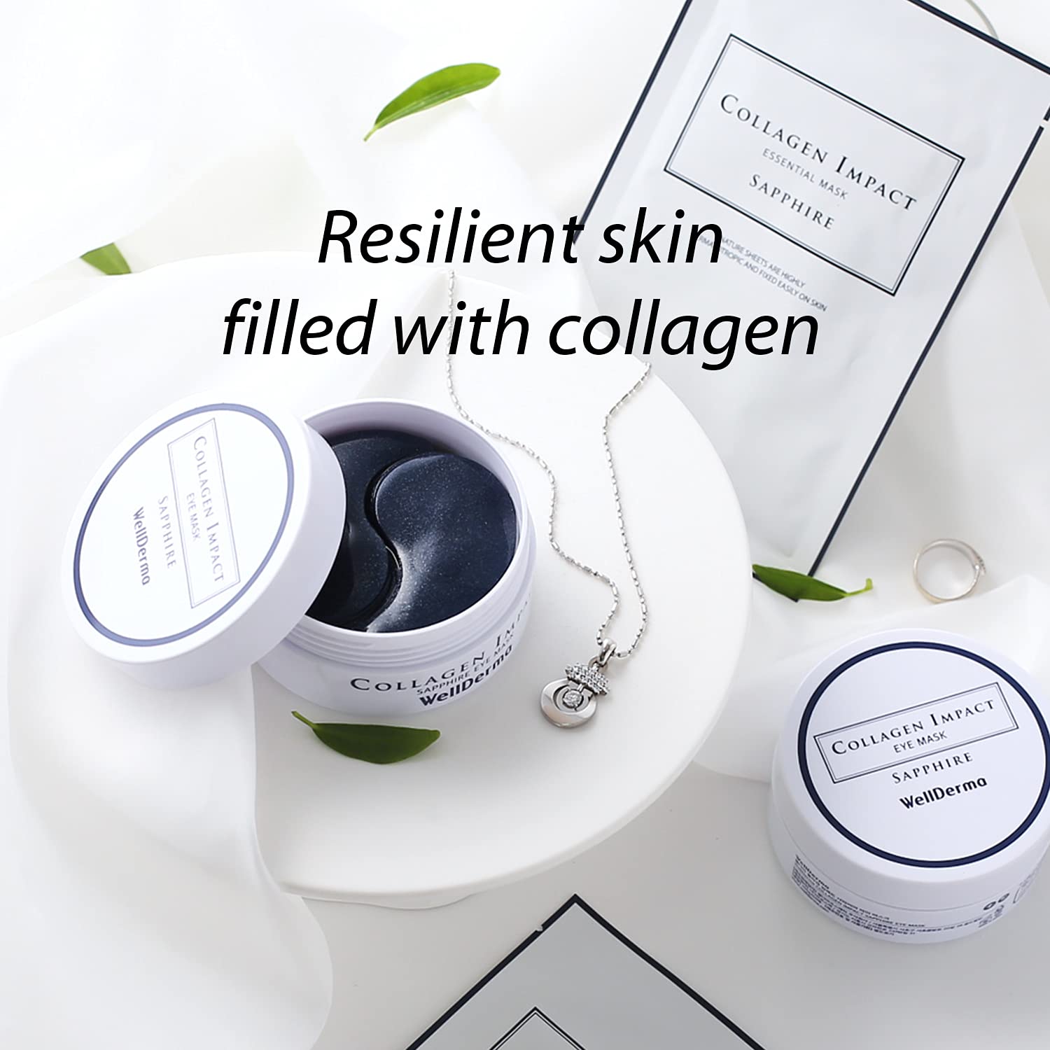 Dluxe Ave. WELLDERMA Collagen Impact Sapphire Eye Mask 60 Sheets - NOURISHing ENRICHed Moisturizing Hydrogel Eye Patches Wrinkles Collagen Under Eye for Dark Circles Dry and Dull Skin